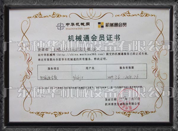 中華機(jī)械網(wǎng)榮譽(yù)會(huì)員證書