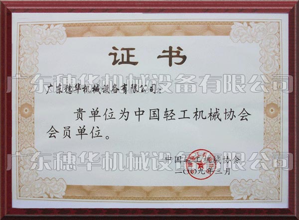 我國(guó)輕工機(jī)械協(xié)會(huì)會(huì)員證書