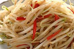濟(jì)南人喜歡吃豆芽,豆芽炒肉絲、豆芽炒粉皮、綠豆芽炒鮮粉皮、醋溜綠豆芽等,至今仍然經(jīng)常被列入濟(jì)南人一日三餐的菜譜之中;濟(jì)南人在拌涼菜,或做麻汁面時(shí),綠豆芽也都是必不可缺的菜沫。在《中國(guó)名菜譜》中,有一道名菜——油潑豆芽,就是由濟(jì)南名廚提供的。