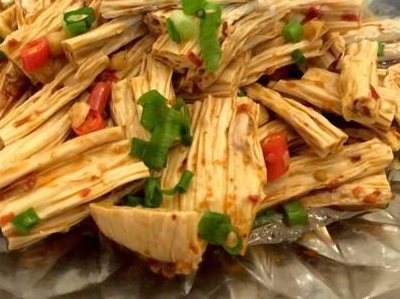 1、腐竹放開水中泡發(fā),香菇泡發(fā)切成絲。