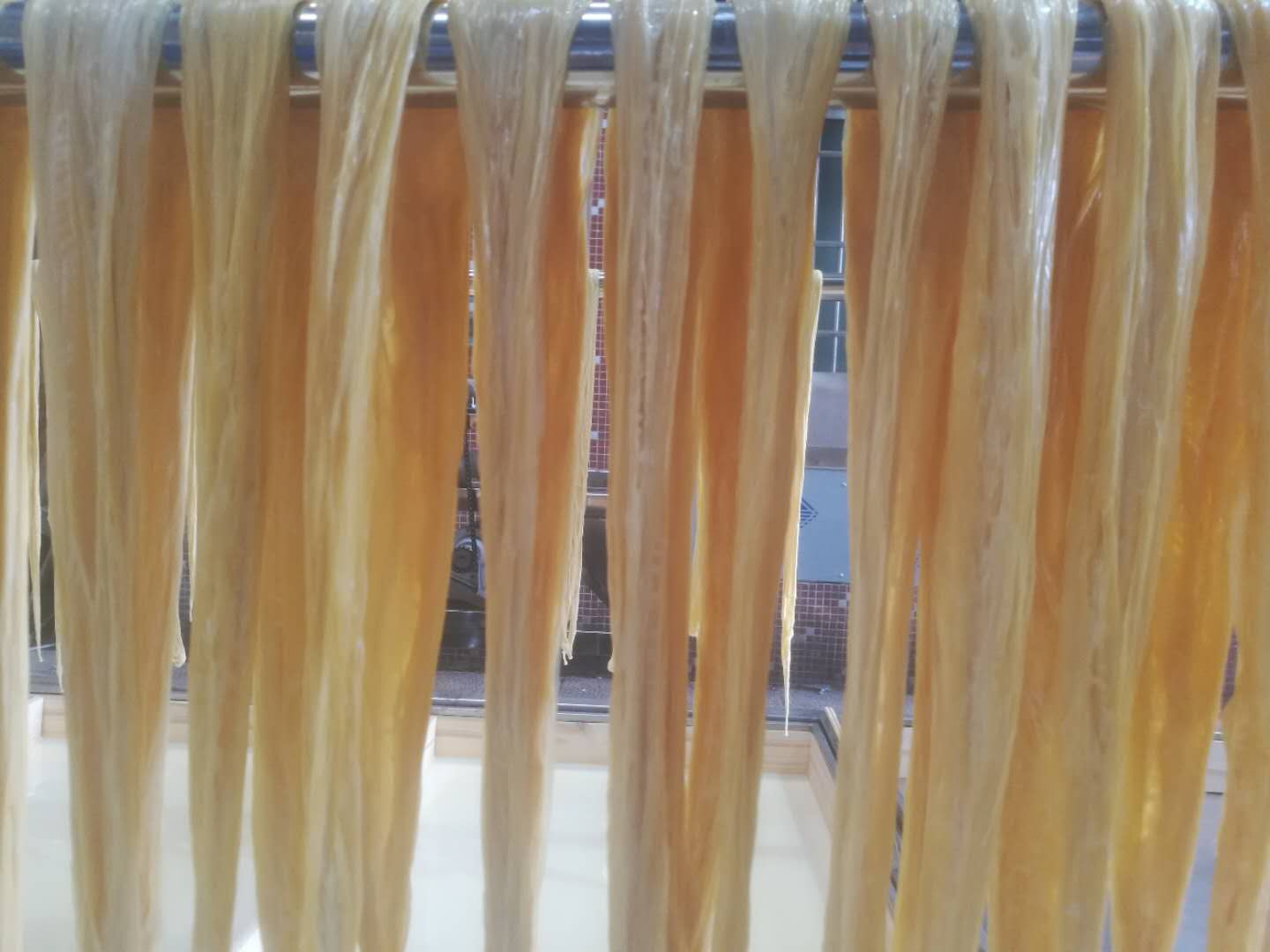 “一洗豆、二浸豆、三打漿、四隔渣、五擰漿、六煮漿、七鏟邊、八提膜、九掛灶、十曬晾”,遵照傳統(tǒng)古法,盡可能手工制作,還原腐竹本味。豆?jié){煮沸時(shí),上層凝固的部分成條的挑起來(lái),晾干后就成了腐竹,用水泡開(kāi)后就可以拿來(lái)烹飪了,吃著又鮮又滑,F(xiàn)在的人多數(shù)是用腐竹機(jī)來(lái)半自動(dòng)化制作腐竹,效率高。